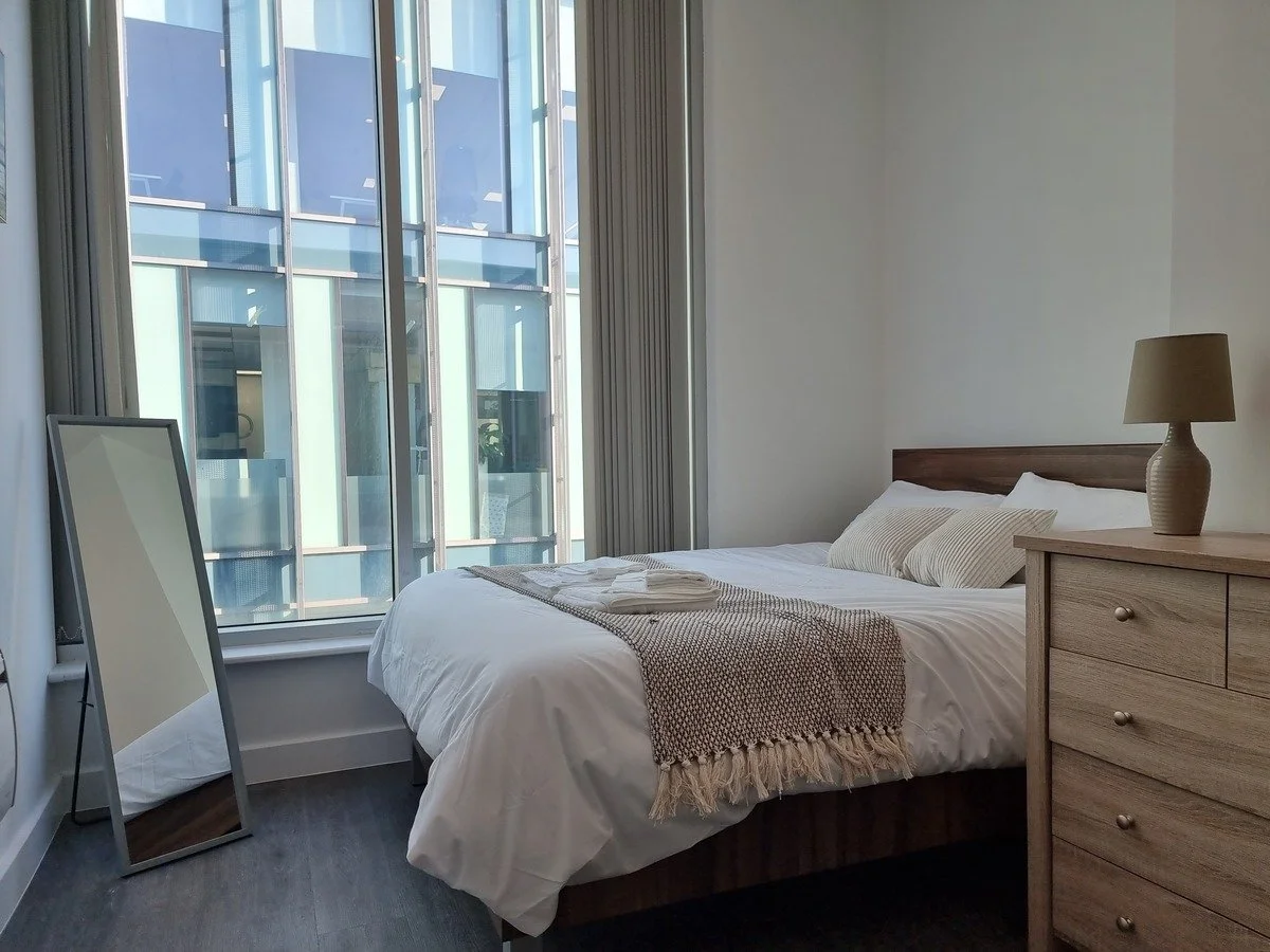 A well positioned apartment central in Stockport City Centre, bright and compact, hosted by Staycasa Accommodation. Great location with amazing transport links situated just opposite of the Stockport train station and the new bus exchange centre. Restaurants and bars are just behind the apartment with plenty of options to choose from.