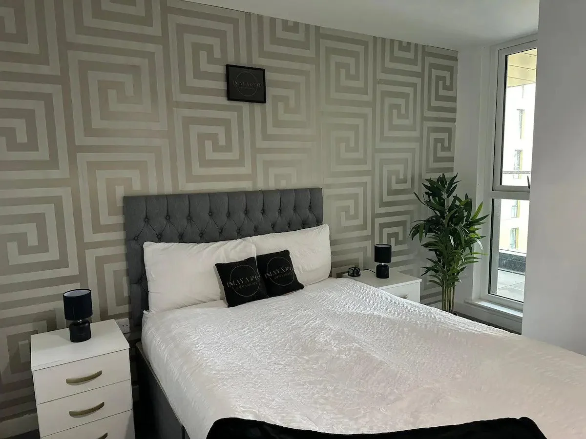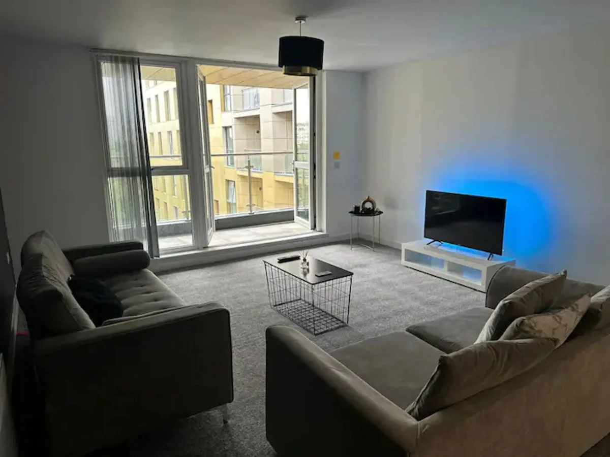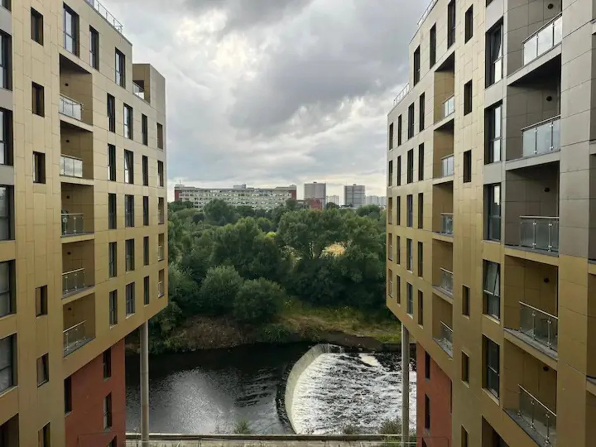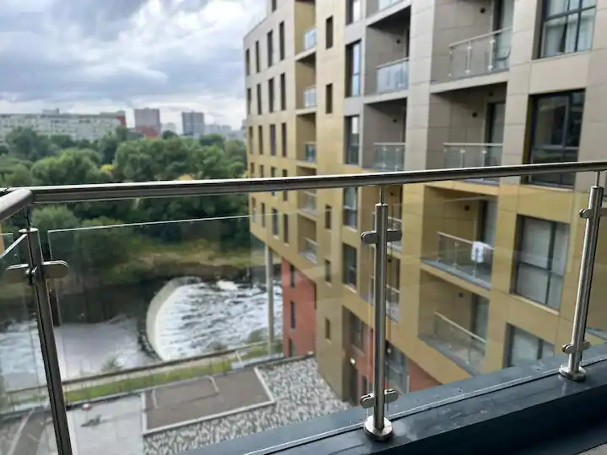 Modern 2-bedroom apartment with stunning river views, hosted by Downtown Luxury Stays in partnership with Staycasa Accommodation. Located near Salford Central Station, this stylish apartment accommodates up to 4 guests and offers excellent transport links, making it ideal for both business and leisure stays.