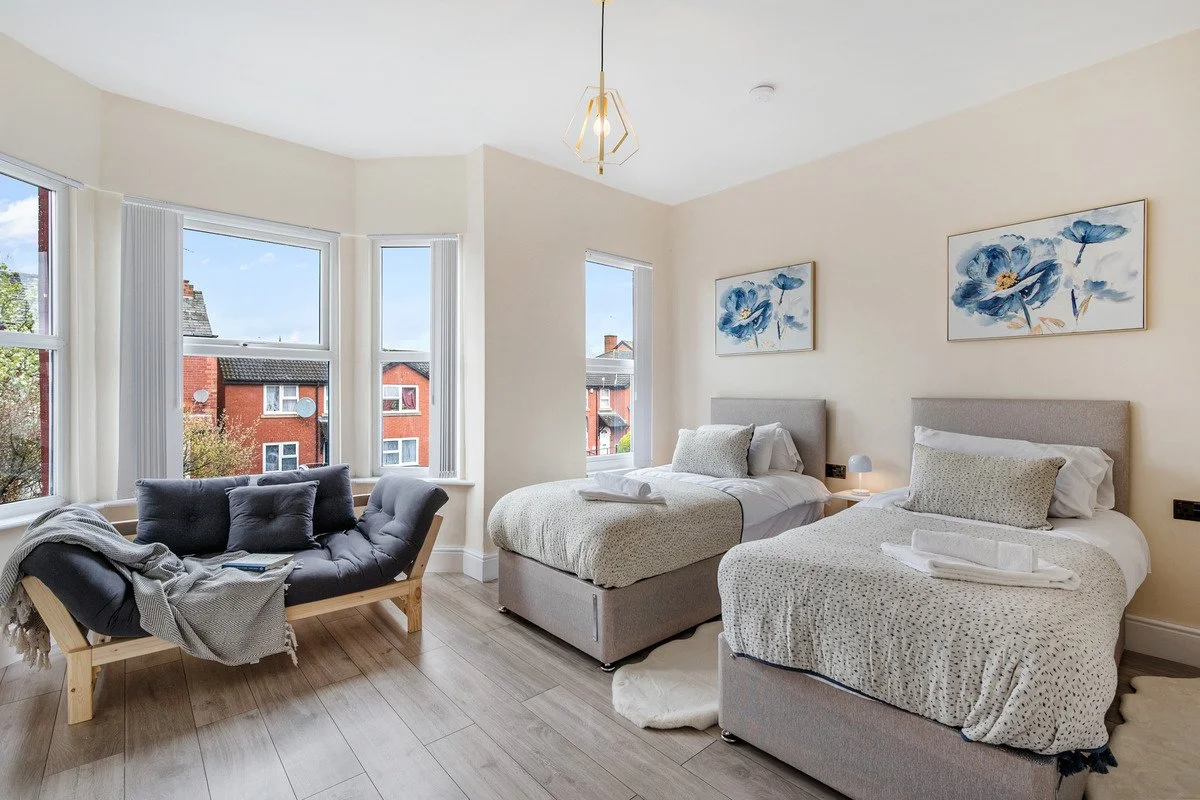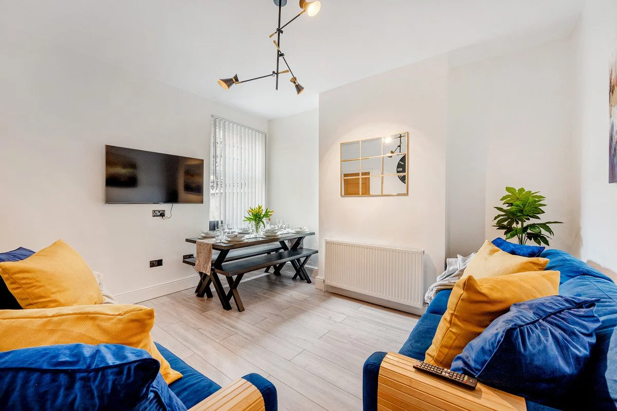 Stylish and Modern 4-bedroom house, hosted by Staycasa Accommodation, is located near Manchester City Centre. It comfortably sleeps up to 8 people, making it ideal for families or working professionals. The property is just a 10-minute drive from the vibrant Curry Mile in Rusholme, famous for its diverse dining options, and a few minutes from Manchester City Centre. Several transport options are available nearby.