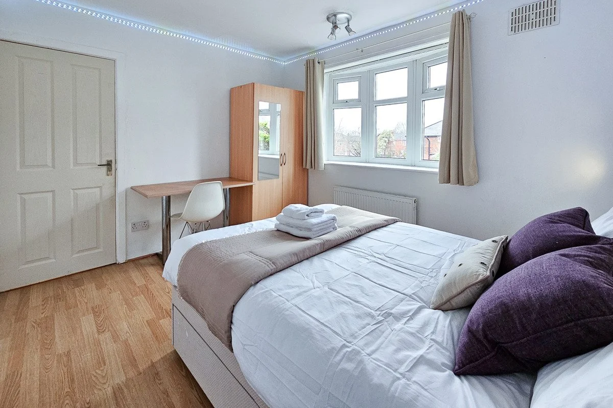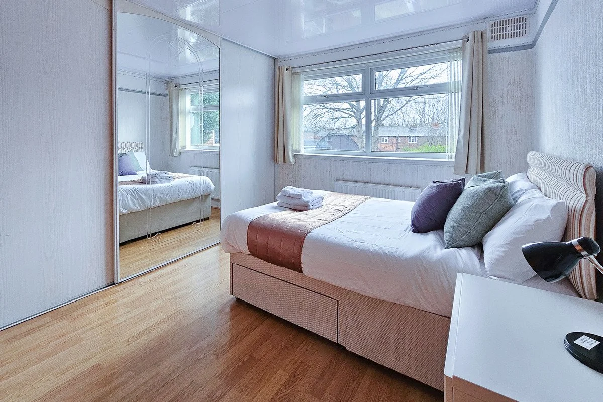 Local amenities include the vibrant Levenshulme Market, known for its artisanal food and crafts, plus a variety of independent shops and cafes along Stockport Road. Enjoy walks in nearby Cringle Park or explore the area's diverse dining scene. Perfect for families or groups seeking a quiet residential setting with easy city access.