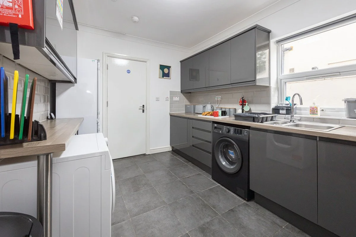 Local amenities include Queens Park, perfect for outdoor activities, and a variety of shops and convenience stores within walking distance. The area offers a mix of residential calm and urban convenience, with easy access to Manchester Fort Shopping Park. Ideal for groups or professionals seeking a well-connected base with ample space and good transport links.